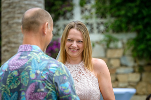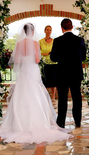 On the day of the wedding Liz arrived at the villa an hour or so before the ceremony and came up to meet us individually. She is a very warm and genuine person and it was a pleasure and relief to finally meet! The ceremony itself was beautiful and the ambiance was set because of Liz’s calm and patient tone as she performed our ceremony. She even delivered my jokes better than I could! She is clear, has excellent enunciation and most importantly has the caring manner to make the readings come alive with emotion. She was dressed very fittingly and stood in clear view of our guests without hiding behind a table or altar.