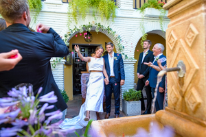 We planned a small initiate ceremony to celebrate our marriage. From our first meeting we knew Liz would be the celebrant for us. She understood that we wanted a balance between relaxed and formal, something our children could be a part of. Her suggestions for the format were perfect. Her communications in the months running up to the day were regular without being irritating, to be honest we probably needed prompting at times. On the day Liz and Tony (the photographer) arrived to our villa in good time to set up. They fitted in perfectly, it was like having two extra members of the family. The ceremony itself was the perfect length and was incredibly touching. Frankly Liz is a pro, she effortlessly managed a change we made with less than 24 hours to go without complaint. Thank you Liz, our day would not have been half as memorable without your hard work and dedication to detail. Also a quick word for Tony the photographer. We weren’t sure about having one but thank goodness we did. He has left us with some incredible photos for life, he managed to disappear into the background when needed but also to pick out some incredible locations for fantastic shots. Liz and Tony are a great team. You will not be disappointed with them. Thank you again. Regards Tom and Kate, married August 2024, Ronda, Spain.