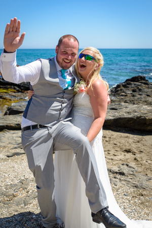 Liz where do we start. We couldn't have planned and organised our special day in your recommended Beach venue if it wasn't for all your help, emails, recommendations etc. You made it all very simple for us with the language barrier. The ceremony was fantastic: it was all about us, it was so personal and relevant everyone loved it. Our guests have said it’s the best wedding they have been to. Tony did so many lovely natural photos capturing our day perfectly in the sunshine! Thanks again for everything. We have already set our 10 year vow renewal same place same date lol. Beth & Curtis, package with photographer, May 2025, Benalmadena, Spain.