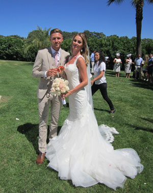 Amy and Stefan Davis, married September 2024, Sotogrande, Spain.