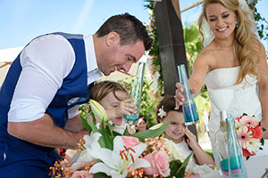 The sand ceremony blessing was a special touch to our beautiful, intimate and romantic wedding. Your patience was greatly appreciated with adjusting our last minute personal "vows" and assistance in choosing the perfect location on the beach for our special day. The ceremony at sunset on Marbella Beach was filled with intimacy that spoke to our hearts and the hearts of our guests.